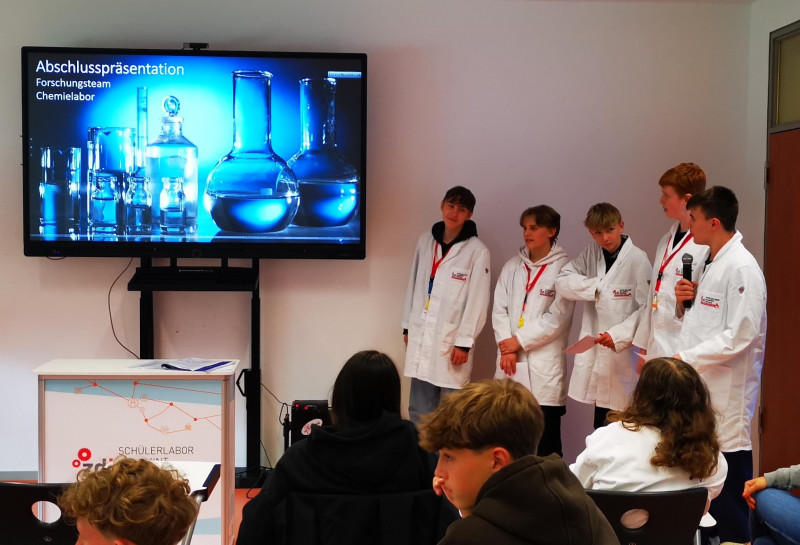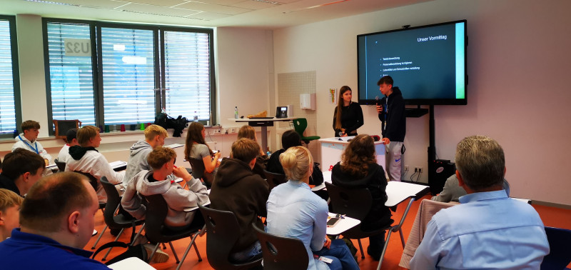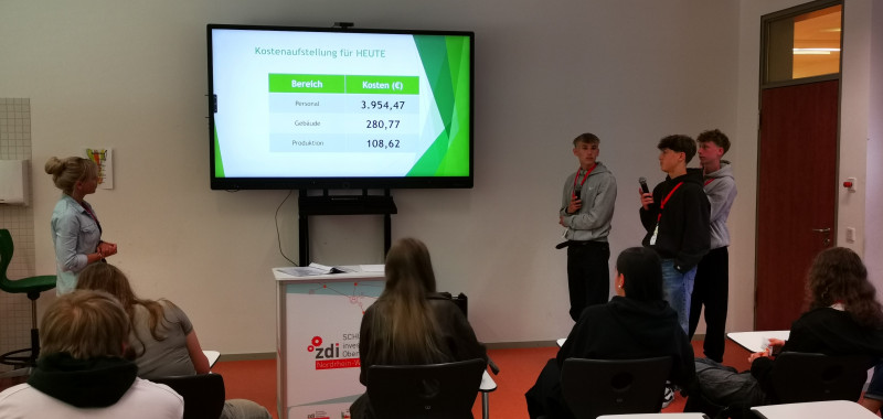 Mitte Juni ging es für den Chemie-Kurs von Chemielehrer Stefan Kayser zu einem spannenden Projekttag an das Berufskolleg in Dieringhausen. Die knapp zwanzig Schüler*innen der Klasse 9c fanden sich morgens zunächst im Besprechungsraum der Schule ein. Nach einer kurzen Vorstellungsrunde und einem Rundgang zu den verschiedenen Räumlichkeiten im Haus wurden fünf Gruppen gebildet. Aufgehängt am Oberthema „Produktion eines thermoplastischen Kunststoffs“ wurde bei diesem Besuch der Alltag in einem Unternehmen simuliert, und zwar mit all seinen Aufgabenfeldern. Daher ging es – neben der Auseinandersetzung mit dem Thema Kunststoffe – um Kommunikation, Design und Marketing, Technik, Forschung sowie Finanzen. Mit dem Ziel „Wirtschaft zu verstehen“ und Zusammenhänge zu erkennen, bestand die herausfordernde Aufgabe des Projekttages schließlich darin, ein Produkt aus Polycarbonat-Kunststoff zu produzieren, was auf „dem Markt“ theoretisch Bestand hätte. Bis zum Ende am Nachmittag wurde mit kurzen Pausen und zwei Feedback-Runden alles darangesetzt, das Kunststoffset, eine Messer/Löffel/Gabel-Kombination zum Zusammenstecken, fertig zu produzieren und das gesteckte Ziel zu erreichen. Erfolgreich und mit einigen bunten Kunststoff-Trophäen in der Tasche, endete der vom Oberbergischen Kreis und dem zdi (Zentrum durch Innovation) geförderte Berufsorientierungstag.