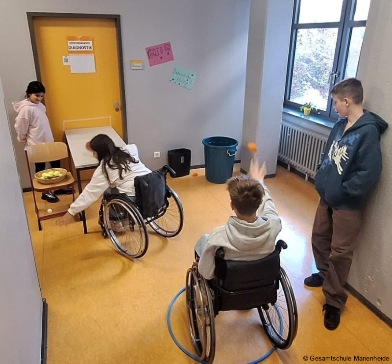 Wer sich aktiv betätigen wollte, konnte dies in den Sporthallen beim Hindernisparcours und beim Badminton mit dem Kooperationspartner der Schule, dem BC Wipperfeld, tun. Darüber hinaus lud die Sportklasse 6c zum Wettkampf und der Zirkus wieder zum Mitmachen ein. Zahlreiche weitere Aktionen zogen die Gäste an: u.a. das strategieorientierte Rechtschreibtraining RESO und die Leseförderung, das „Horrorklassenzimmer“, ein Escape-Room, die traditionelle Schachecke, die Feuerwehr im Außenbereich und vieles mehr.