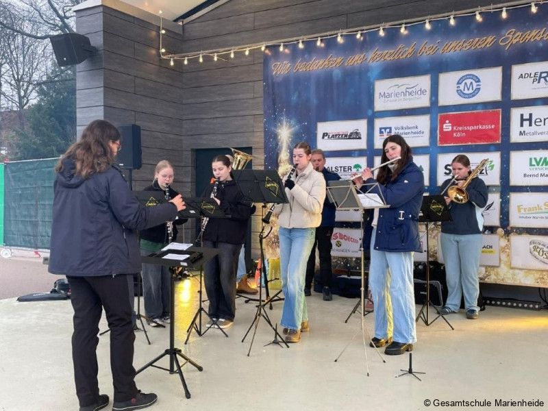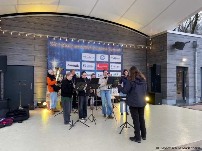 Am 07.12.2025 durfte die MAMBA mit besinnlichen und stimmungsvollen Weihnachtsliedern zum Weihnachtszauber auf dem Weihnachtsmarkt am Heilteich in Marienheide beitragen. Da Musiker in der Weihnachtszeit an vielen Orten für das richtige Ambiente sorgen, war die MAMBA mit einer kleinen Besetzung auf dem Weihnachtsmarkt vertreten, was aber nicht minder klangvoll war. Mit festlichen Klängen von Tochter Zion über Oh Tannenbaum und Oh du fröhliche regte die MAMBA das Publikum zum Mitsingen und Genießen an.